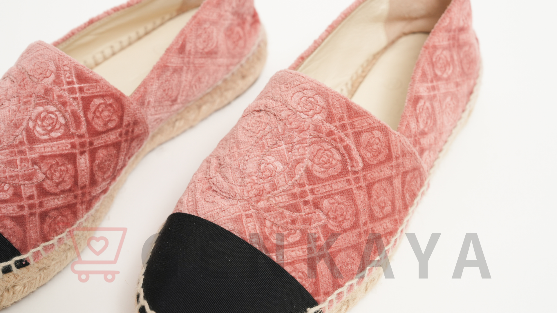 CHANEL エスパドリーユ ココマーク ベロア×キャンバス スリッポン 37 ピンク